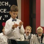 Uczniowie klasy II KSP przygotowali krótkie scenki, w których w humorystyczny sposób zaprezentowali, jak według nich wygląda idealny nauczyciel i wzorowy uczeń. Przedstawienia wywołały wiele uśmiechów i zostały nagrodzone gromkimi brawami.