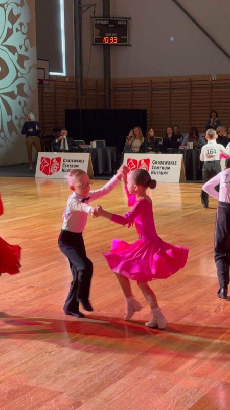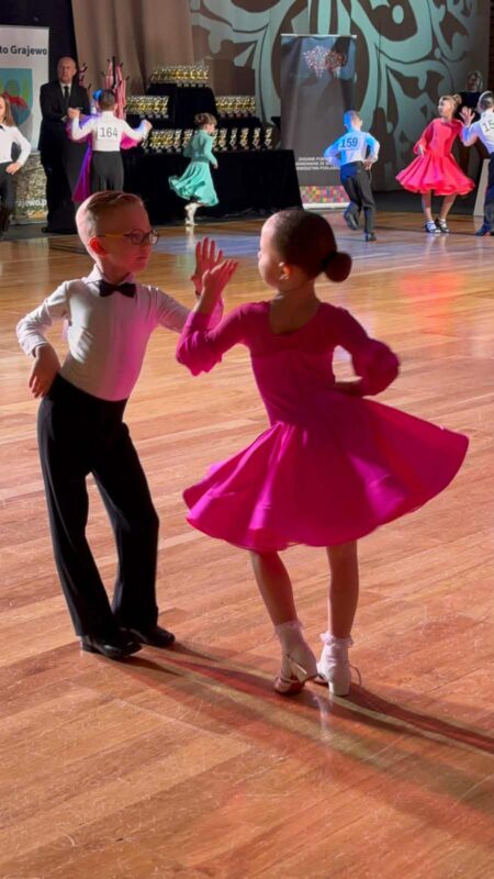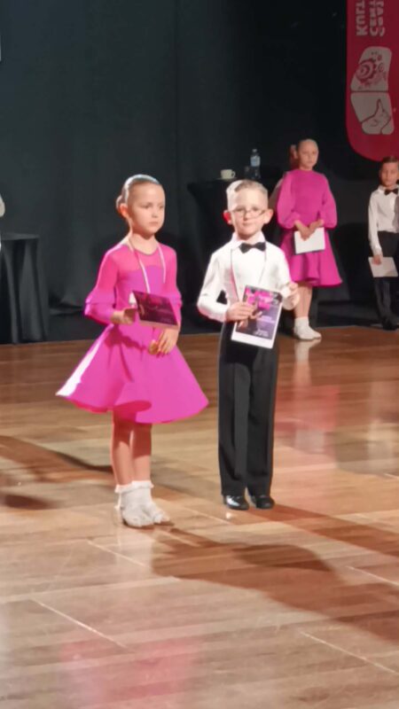 Młodzi tancerze pokonali aż 19 par w kategorii wiekowej 8–9 lat, zachwycając jurorów występami w walcu angielskim, cha-chy, sambie oraz polce. Ich talent, zaangażowanie i pasja do tańca przyniosły wspaniałe efekty!